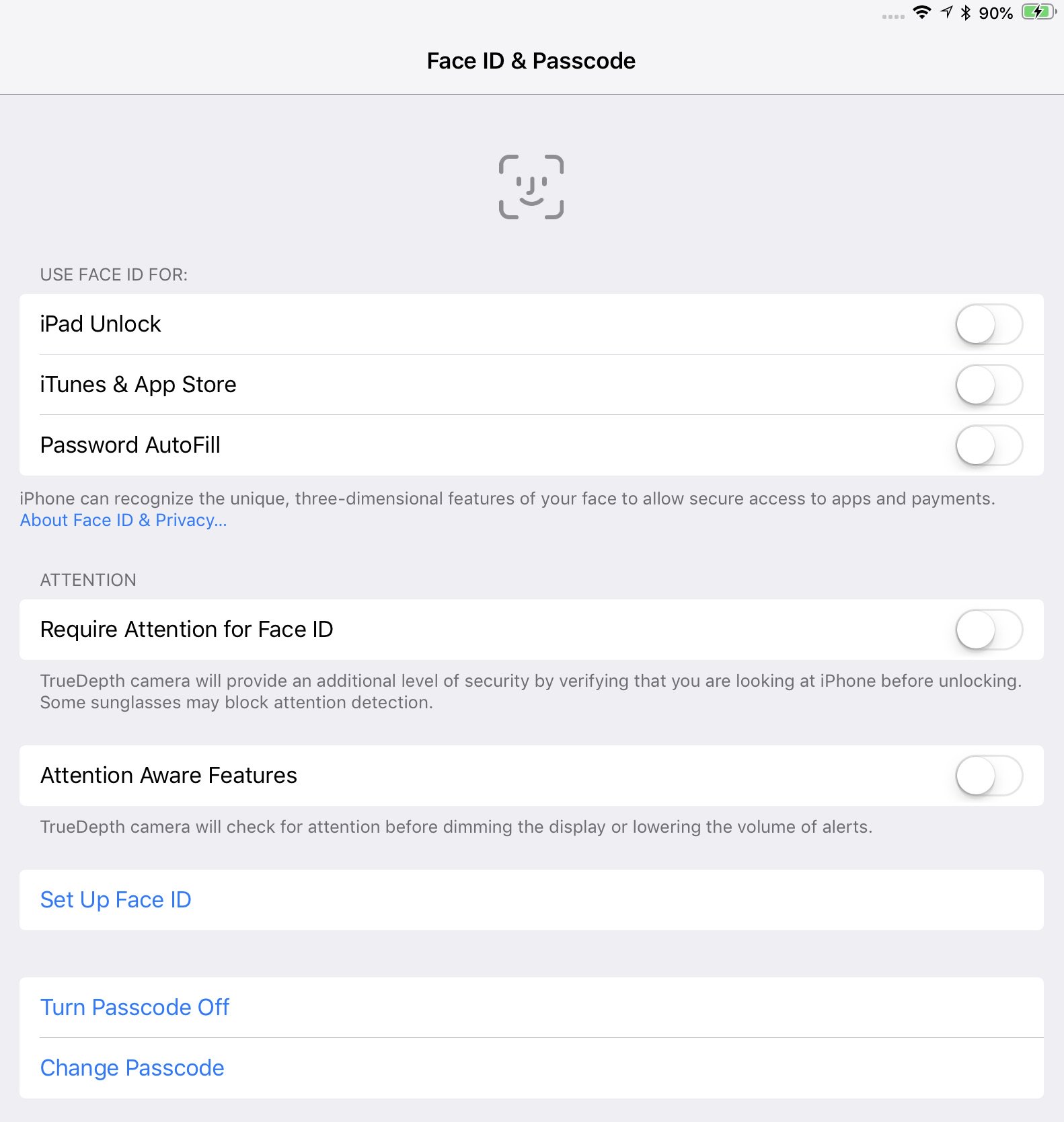 Face ID設定画面の存在